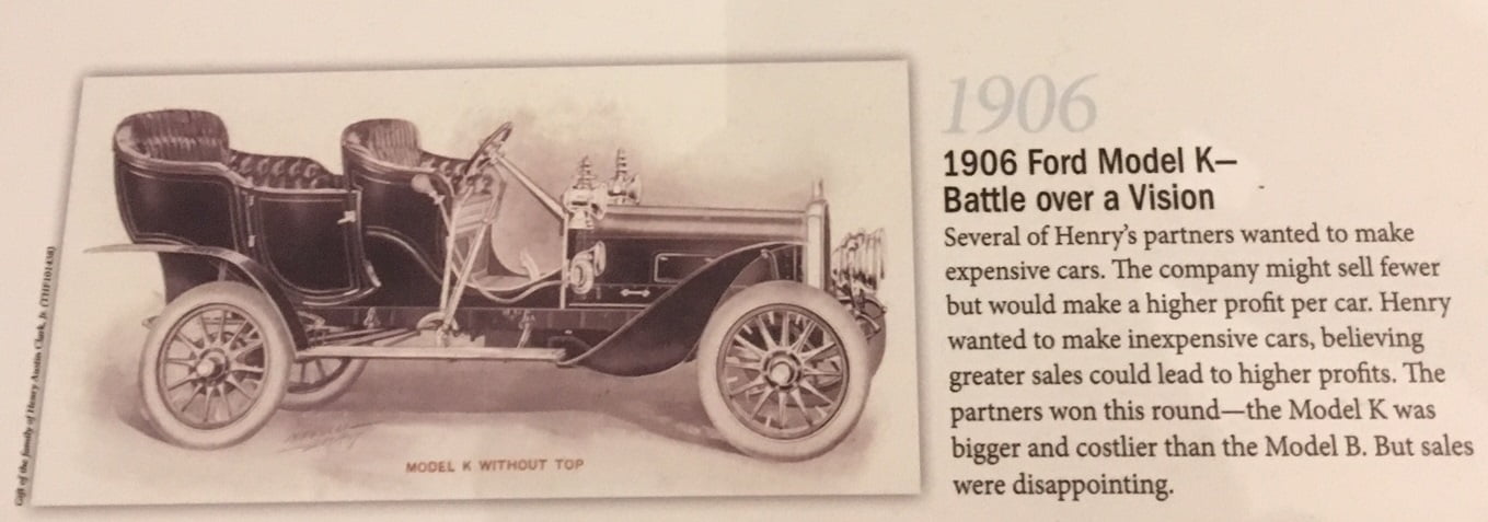 The Henry Ford owns at least two Model K Fords which were produced and sold from 1906 – 1909. None were on display, but a placard next to the other letter cars told the story.