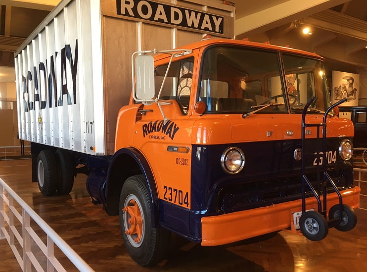 Common all over the North American continent for decades were the popular Ford C series COE (Cab Over Engine) heavy trucks of the 1960’s. This one is a restored Roadway box truck. Versions of this truck were also sold as semi – tractors, all with gas engine power.