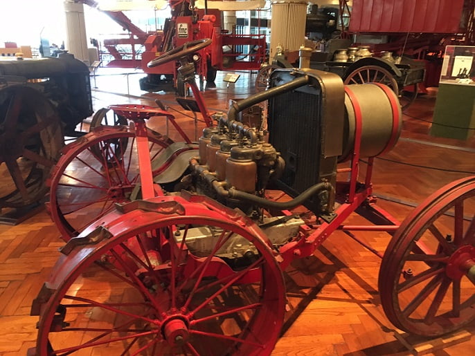 Over in the trucks and tractors section of the museum we see a tractor built by Ford around 1905 using a left over Model B engine. Apparently it was successful enough that it also received a 1907 – 1908 Model K radiator at some point.