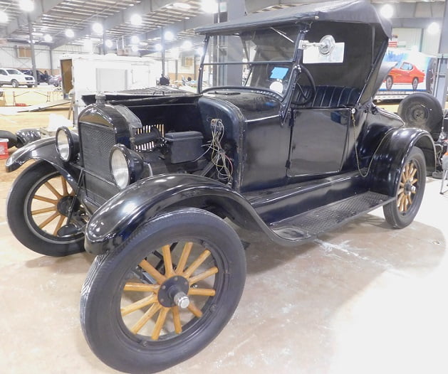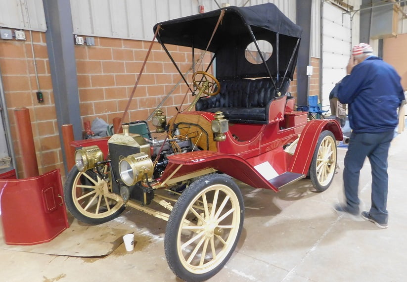 Very presentable 1908 Model S Ford runabout was fairly priced at $39,000 or nearest best offer. It was not terribly authentic, yet it had sensible modifications that would make it reliable as a tour car. Fit and finish were outstanding. The styrofoam cup on the floor is catching coolant leaking from the water pump.