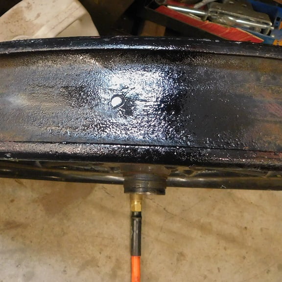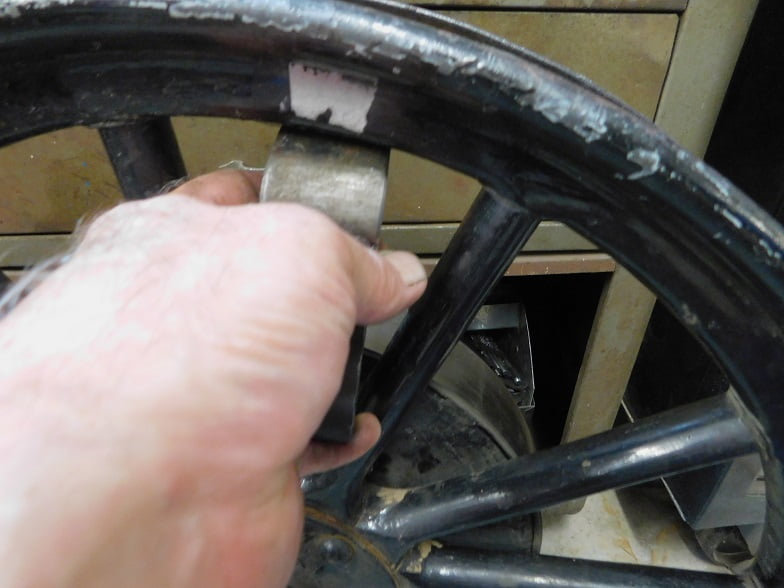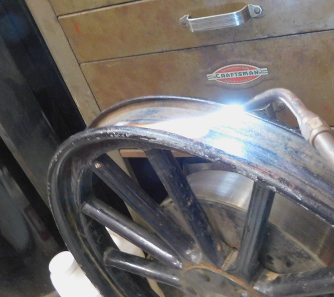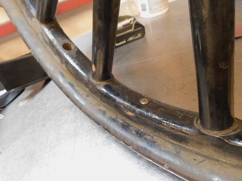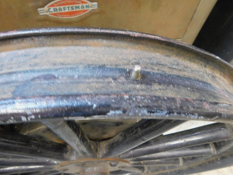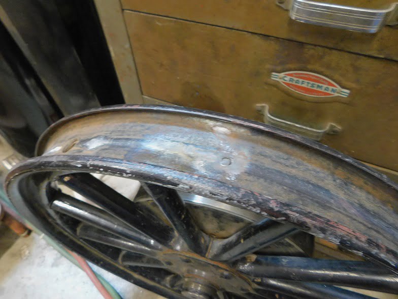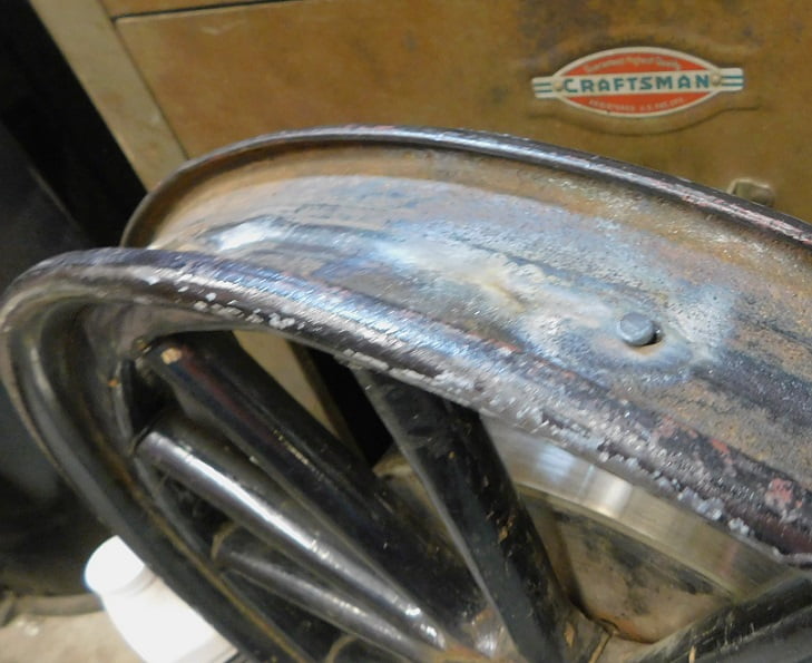 The wheel for our story has been in use for 103 years. The wood is in good shape. The rim is in fairly good shape, with no major pitting and not bent.