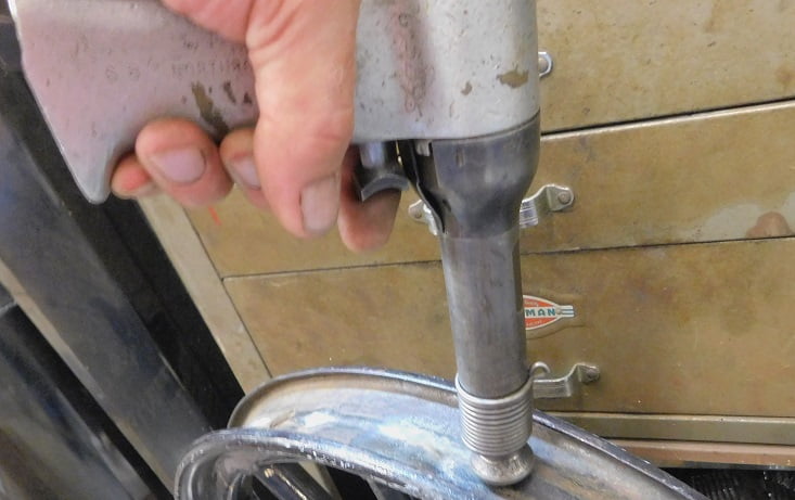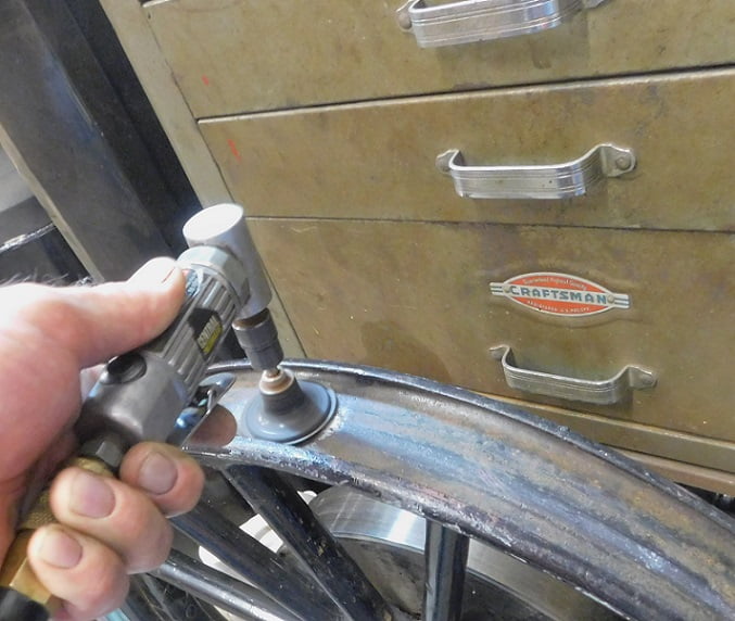 If we had a set of wheels to rivet we would figure out the proper length of the rivet and not have to grind every rivet buck tail. In this case we are only doing one rivet. The expedient way to make the rivet proper is to grind off the buck tail until it is acceptable.