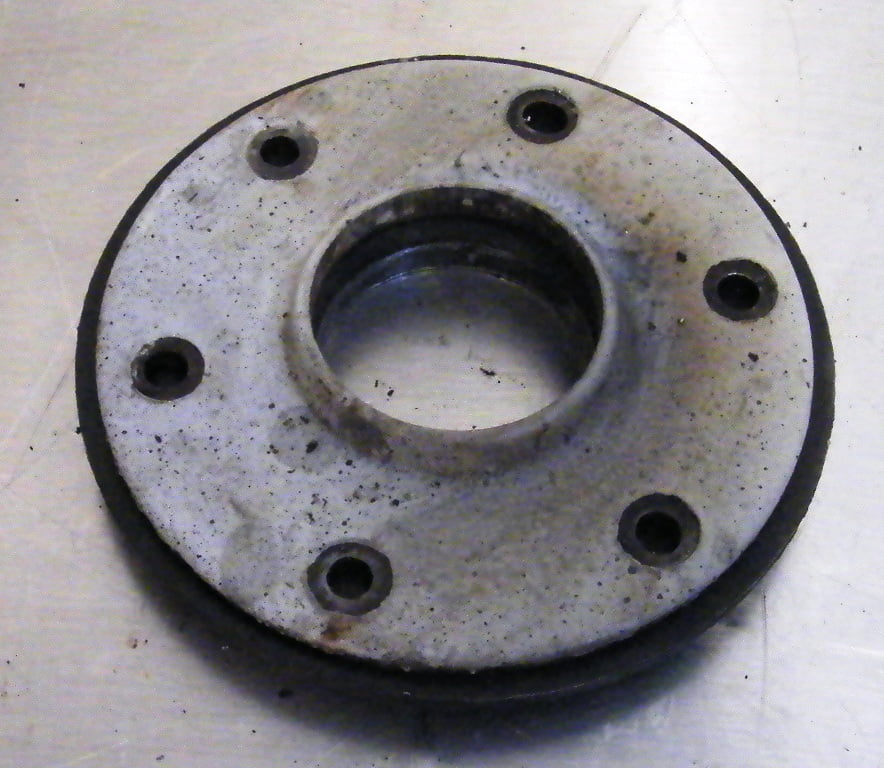 Above the 1909 – June 1910 hub on the left is 5 1/2″ diameter with 5/16″ bolt holes. The 1914 – 1917 hub on the right looks huge in comparison.