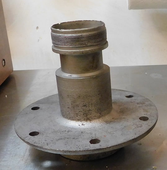 The hub we are working on had a ball bearing race stuck inside the spindle side. Normally we can heat up the race using a bead from the wire welder and it will fall out. This one remained firmly in place despite repeated attempts. We had to use another method. These early hubs are not slotted inside like later hubs. You can’t access the back side of the bearing race to use a hammer and punch or other means. There’s nothing to push against.