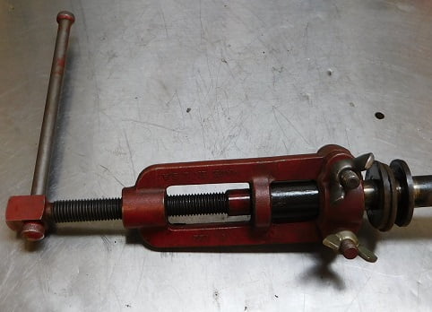It has a 1″ pilot with a 1 1/2″ spot face. It is used by hand for a few turns until the pin can be inserted easily.
