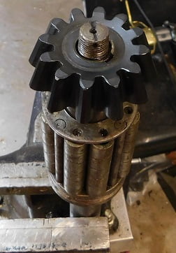 We install the new pinion gear and mark the position of the cotter pin on the shaft with a Sharpie.