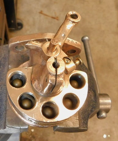 The earliest Model T Fords used the Kingston 5 Ball Carburetor. By all accounts the performance was and is great with the Kingston 5 Ball. A few Model T’s in 1909 also were produced using another type of carburetor made by Buffalo, but those carburetors are seldom seen today, and Ford did not use many. The Kingston 5 Ball is a very simple and sturdy all brass / bronze design. The five balls provide a secondary, on – demand air supply for the carburetor. As engine speed increases the decreased air pressure above the balls causes them to lift off their seats as needed by engine demand. One, some, or all of the balls might lift depending on airflow. This makes the carburetor very efficient and helps to eliminate flat spots with various throttle openings. Read on and we will see how to rebuild this carburetor.