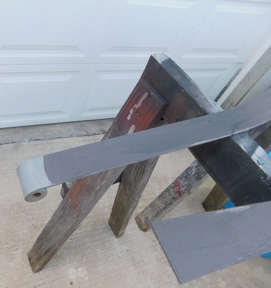After all the surface rust was removed we wiped down the spring, primed it and painted it gloss black.