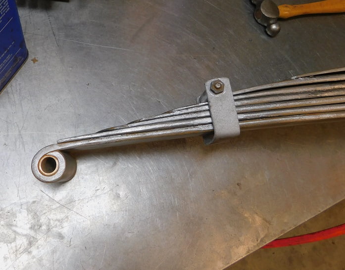 The next day our sandblaster reported that all the parts were ready to go. We picked out the best looking leaves to make an 8 leaf touring assembly. For clarity’s sake we will identify the lowest leaf as #1 and the shortest leaf on top of the spring as #8, with all the others falling in line with this order.
