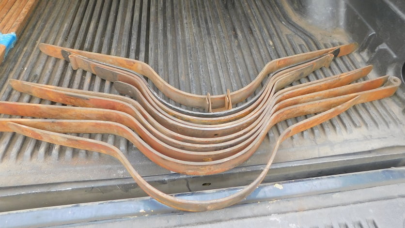The next day our sandblaster reported that all the parts were ready to go. We picked out the best looking leaves to make an 8 leaf touring assembly. For clarity’s sake we will identify the lowest leaf as #1 and the shortest leaf on top of the spring as #8, with all the others falling in line with this order.