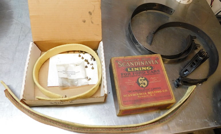 The part that we concern ourselves with today is the bands, or more specifically, the band linings. Ford originally used a cotton / linen / asbestos woven material for the band linings. The original style material is not currently being manufactured, however there were millions of new sets made and they are not impossible to find today. The original style material was sold by Ford, Montgomery Wards, Pep Boys, JC Whitney and a hundred other brands. There are also new band linings available in three materials; Kevlar, Wood, and industrial belting “Scandinavia” brand.