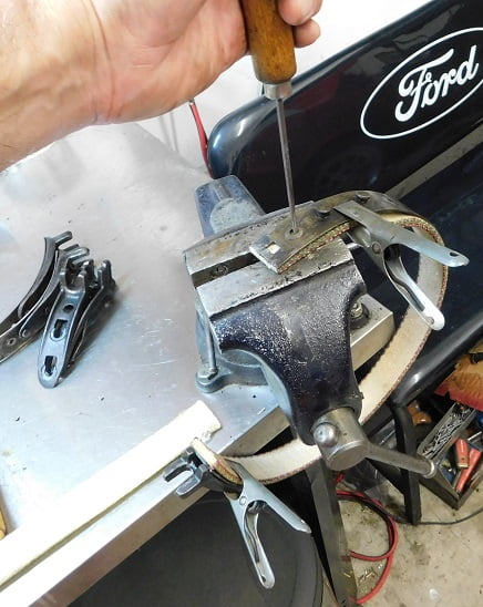 The Model T Part sellers offer the tools above for this job. I have both of them. You will notice how I installed the band rivets. I also have several tools available back when the Model T was new. Again, I use what works best for me. Results count.