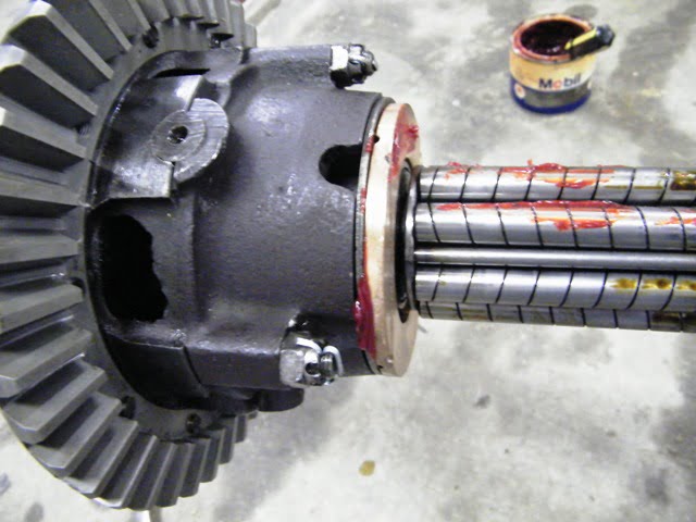The pair of bolts shown at 12:00 position are safety wired backwards – not ideal. Ford originally just passed a single piece of brass wire through all the differential ring gear bolts. If you have worked on many of these you will have witnessed some these bolt heads hanging by safety wire after a bolt has sheared off. Or you will have seen complete and utter destruction caused by unsecured bolt heads being chewed up by the ring and pinion.