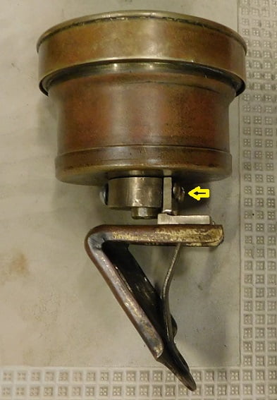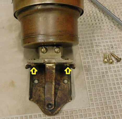 The assembled unit, above, with yellow arrow pointing at the two screws securing the round stock to the L Angle.
