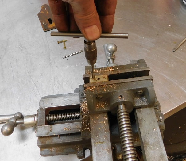 Again more drilling on the drill press, tapping the holes for 8-32 screws, and filing all the edges so that it will look nice when polished.