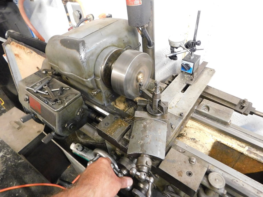 Any day we get to use the lathe is a great day! We face off the oilite stock first on one end…………