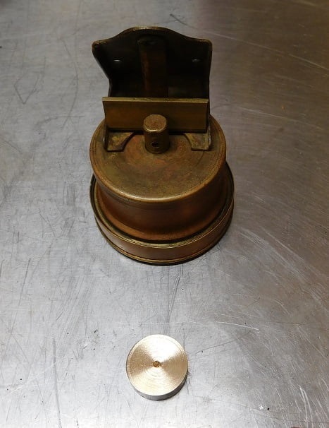 This is about thirty minutes later, and we have a disc about 5/8″ thick and 1 1/2″ diameter made of oillite brass.