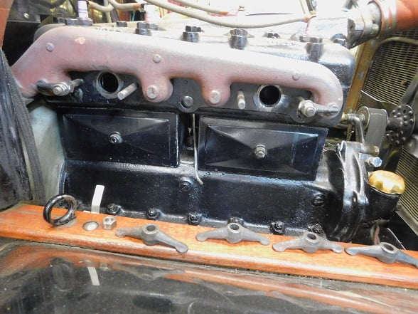 With the carburetor back on the car again we repeated our starting sequence. The engine again fired up on the first pull of the crank. It was noticeably improved. Gone was the backfiring through the intake. Engine acceleration now has no bog, it runs very well overall. Idle quality is the only thing that we think can be improved. We have (so far) only tried the two largest main and compensating jets. We think the combination of the smaller compensating jet with the larger main jet may prove to be the best combination. We don’t have time right now to try it, so it will be a future episode. More to come!