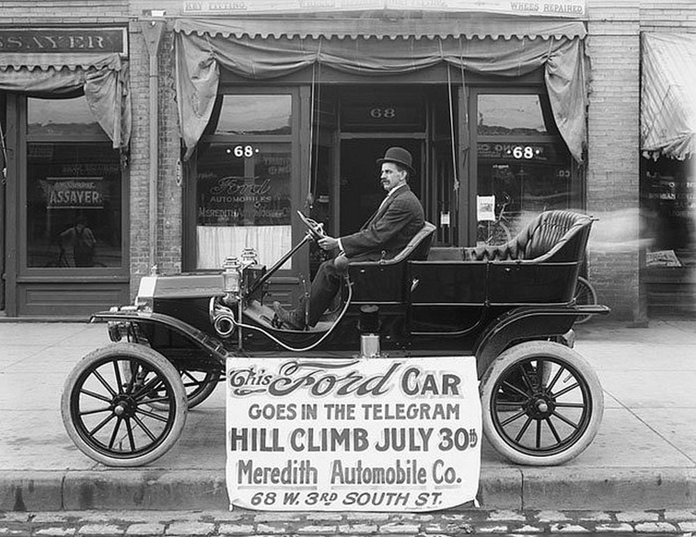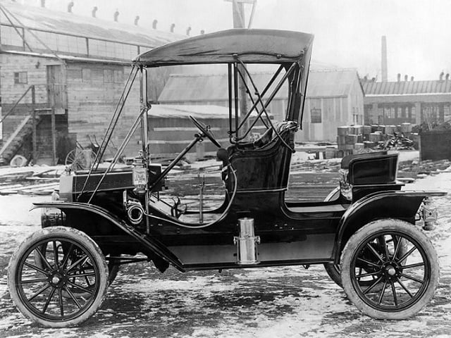 A brand new 1909 – 1910 Model T Roadster in the yard behind the Piquette plant.