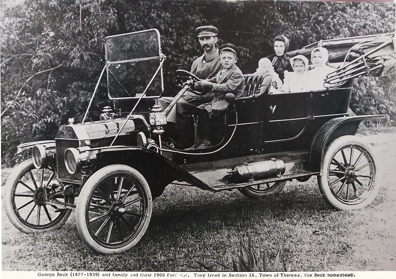 A typical 1909 – 1910 touring equipped with JNO Brown headlamps and cowl lamps. Note that this car apparently did not have the optional top and windshield, buyers had the choice of buying all, some, or none of the optional items offered by Ford.