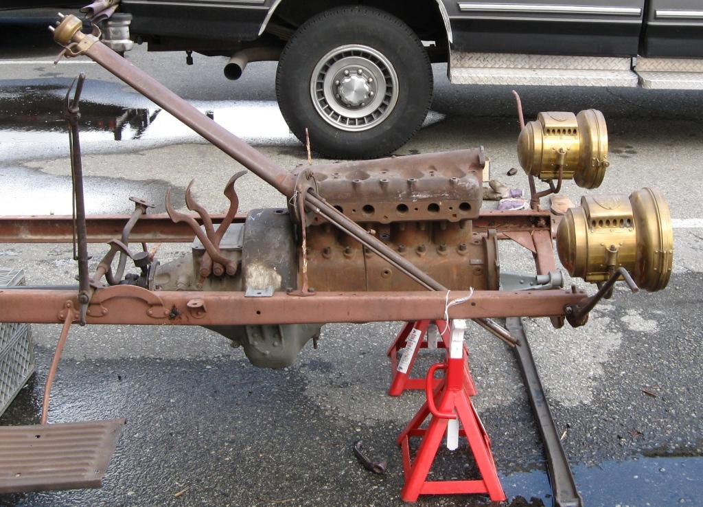 Above, the stuff dreams are made of – a rare right hand drive 1909 chassis for sale at a swap meet.