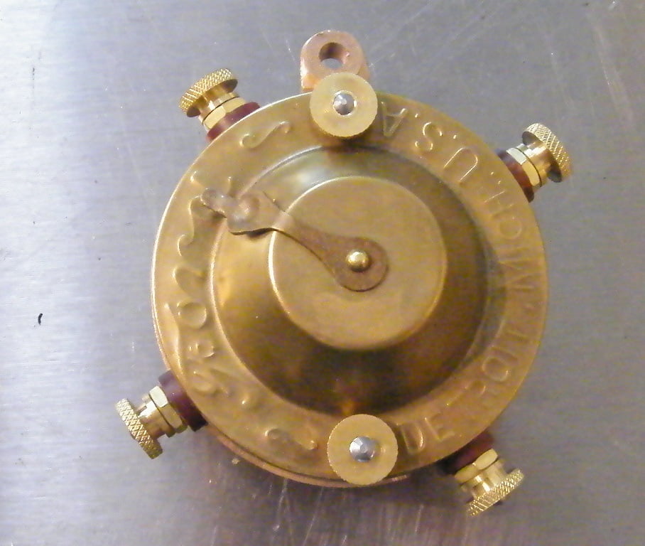 This image above shows the fully assembled timer. This one happens to be a reproduction; originals look nearly identical. The timer is packed with Vaseline prior to installing the cover.