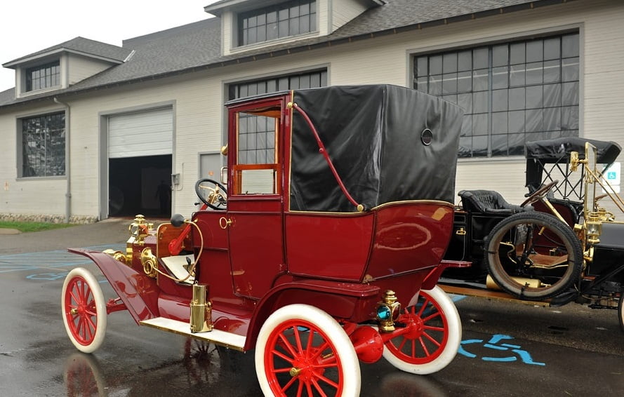 A 1909 Model T in the rare Landaulet ( taximeter cab) body style. It is possible to build 90% of a 1909 Model T using nothing but reproduction parts. Buyer beware.