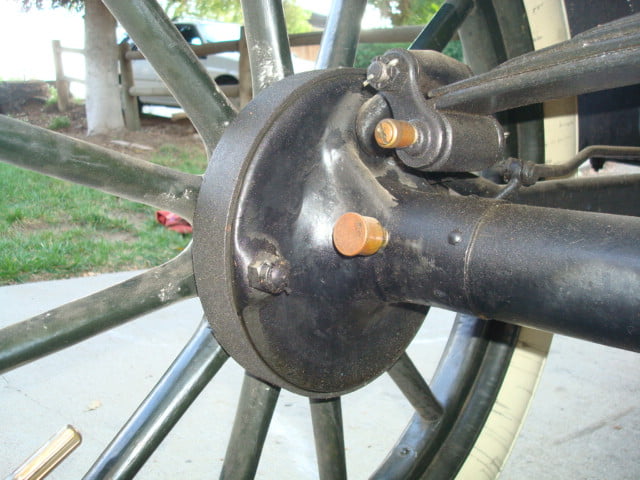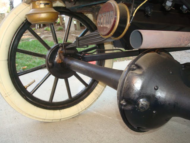 Brake shoes and the rear axle felt retainer were made from brass. This basic design continued for the first 15,000 cars, well into the 1910 model year.