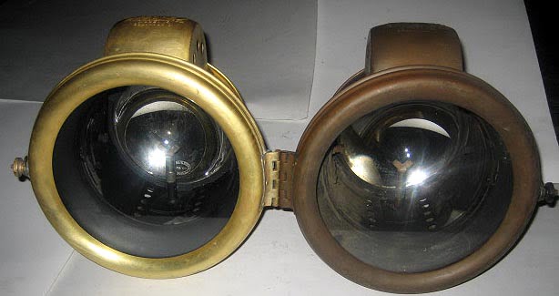 Back side of the JNO Brown Model 100 lamps showing the red jewels. The jewels allow the driver to know whether the lamps are still burning.
