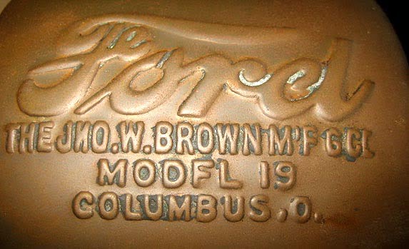 The bonnets on the JNO Brown Model 19 are reverse stamped with Ford script and the manufacturer’s logo and model number.