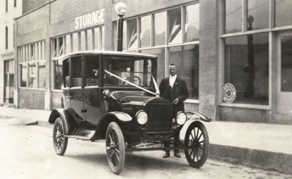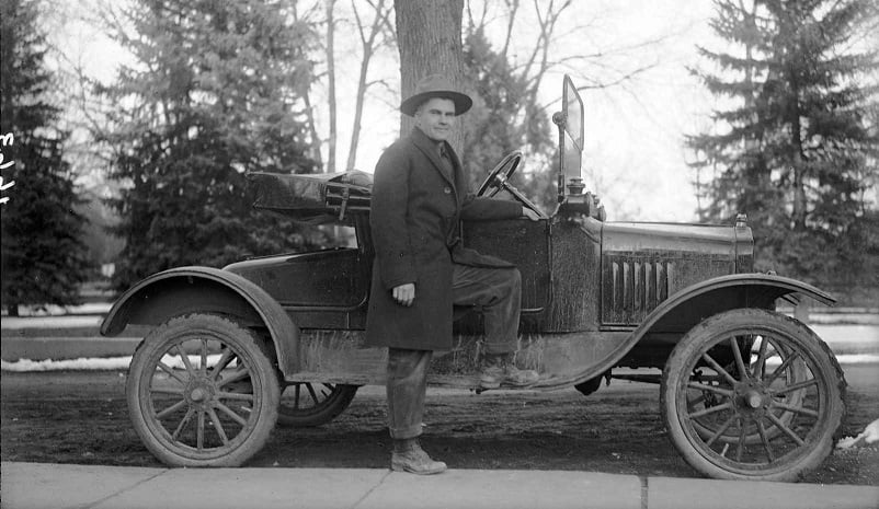 Our 1917 runabout wearing its original paint and interior. The car had about 1800 original miles and had been stored by the original owner from 1920 – 1951 in a garage in Hastings, Minnesota. Photo taken at 4640 3rd Avenue South, Minneapolis, MN 1951.