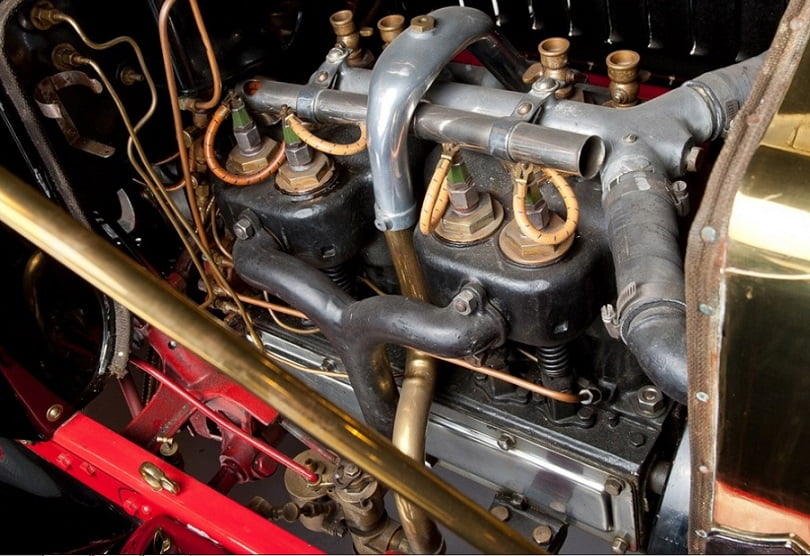 The Buick Model 10 engine featured an accessory drive on the right side of the engine which provided force to operate the water pump and high tension magneto. The Model 10 Buick engine needed to have the rocker arms and valves lubricated before every drive, there was no automatic oiling of the valves.
