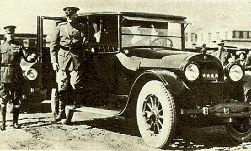 General John J “Black Jack” Pershing preferred Cadillac cars. Above we see him in a 1915 Cadillac 7 passenger touring. Below we see him with a Cadillac town car.