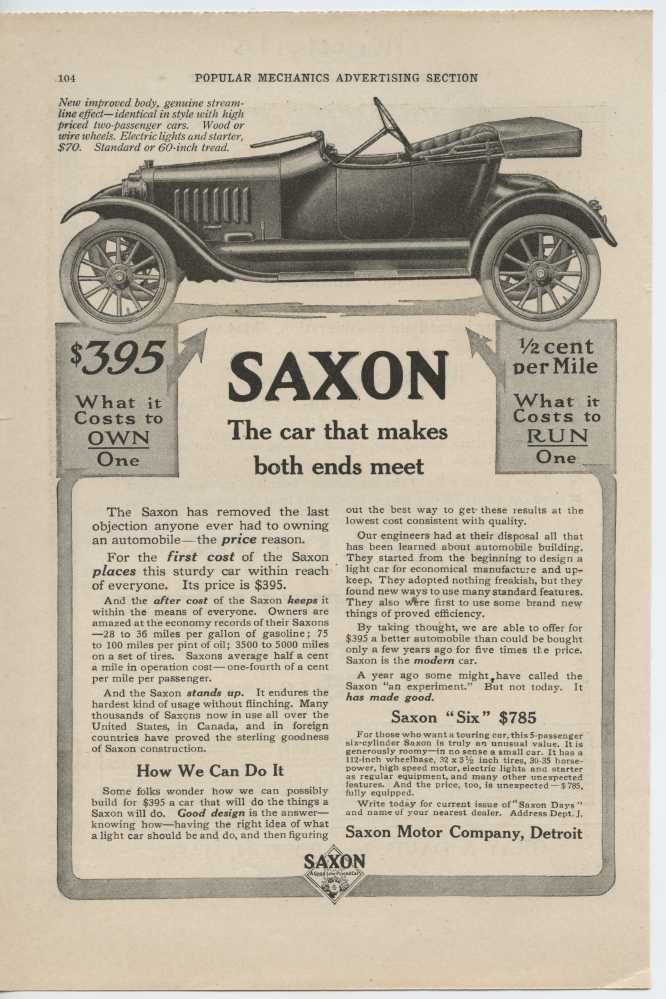 The six cylinder Saxon was not a big seller. The cars are rare today.