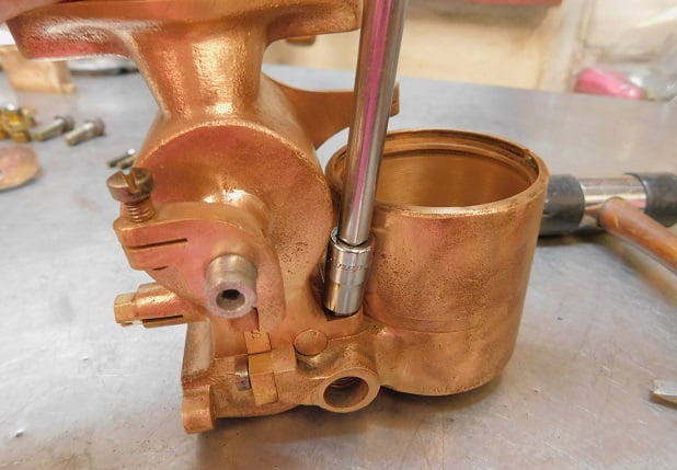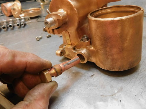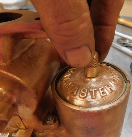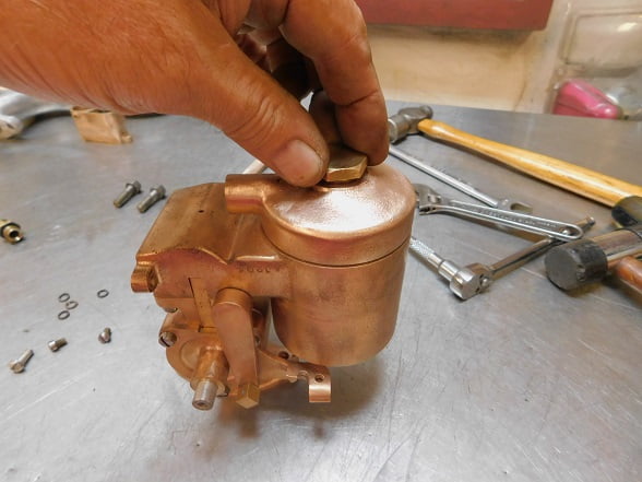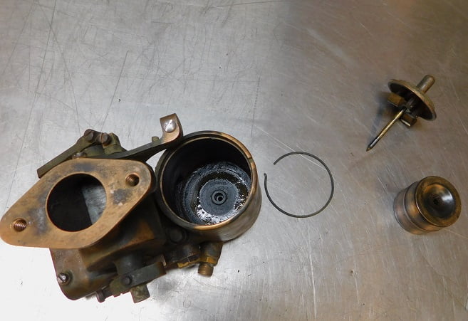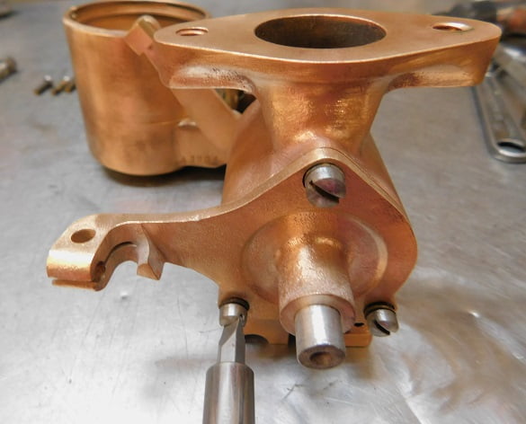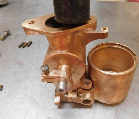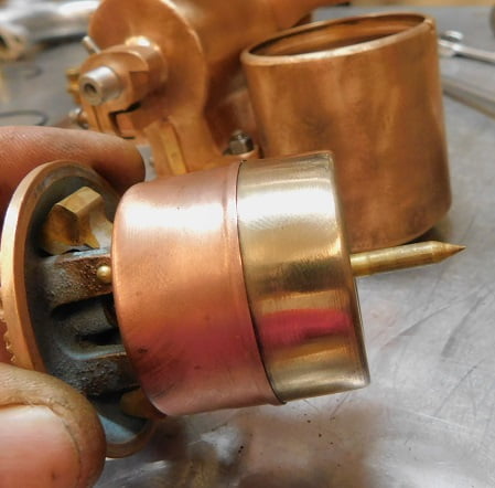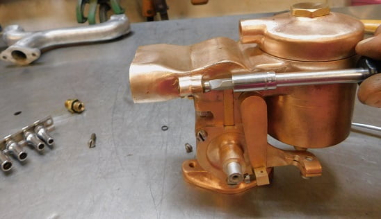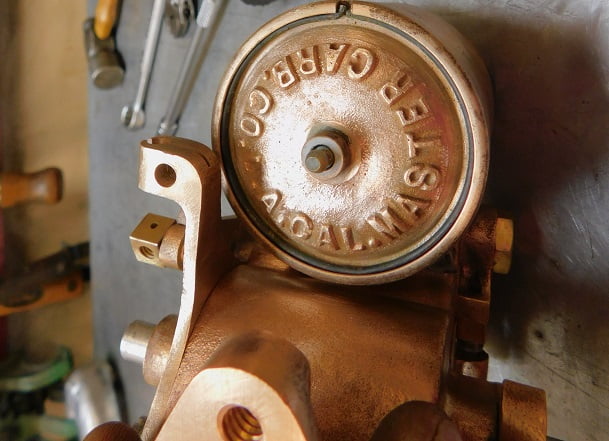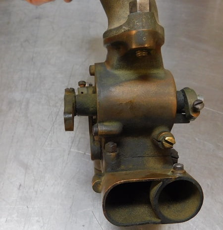 We had just removed a Winfield carburetor so the Master had some big shoes to fill. When this carburetor was made, Ed Winfield worked for Harry Miller. Their carburetors share some ideas such as the way the float / inlet needle design works, and the concept of the barrel throttle valve. Otherwise the designs are much different. Miller’s design is intricate and requires a lot of precision machining. The Winfield design is much simpler and it is easier to manufacture. By any account the Winfield carburetor works very, very well. Was the student better than the master?