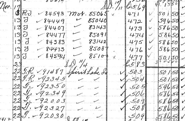 The second source of documentation are the Accounts Receivables Archive, known as Accession 623 to the docents. This is a hand written accounting ledger that documented every Model T that rolled out of the factory. It lists who each car was sold to, the car’s serial number, body style, date of sale, and price. My car was shipped to the Northwestern Motor Company on October 31, 1910. It went by rail to Minneapolis, Minnesota where presumably it sold very quickly. Northwestern Motor Company was one of the most successful Ford dealers in the nation. The record for this dealership has dozens of pages of entries.
